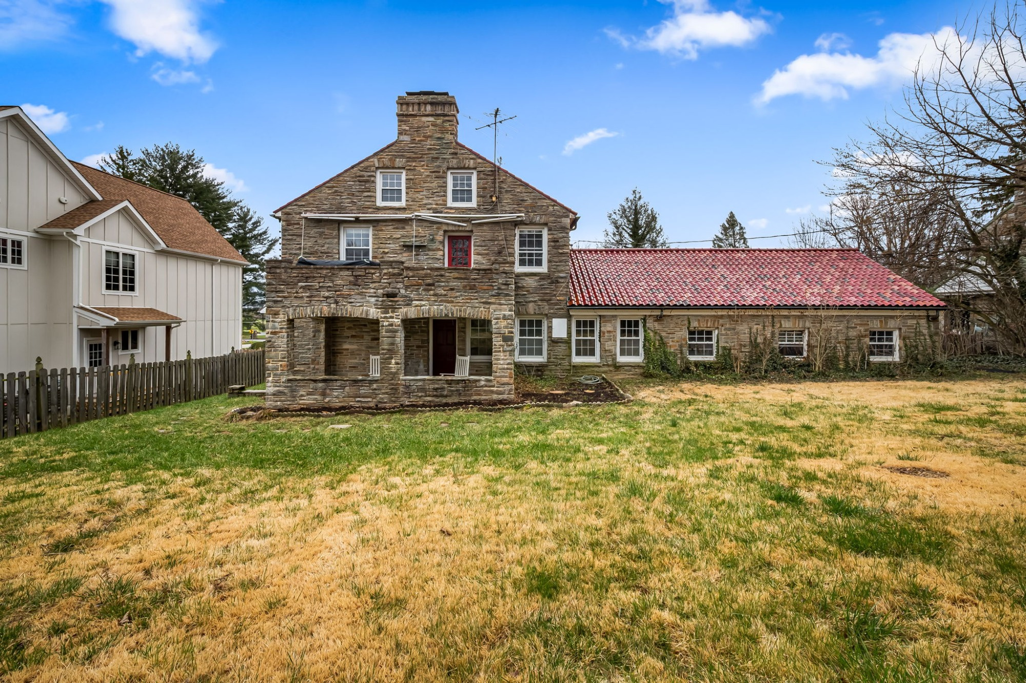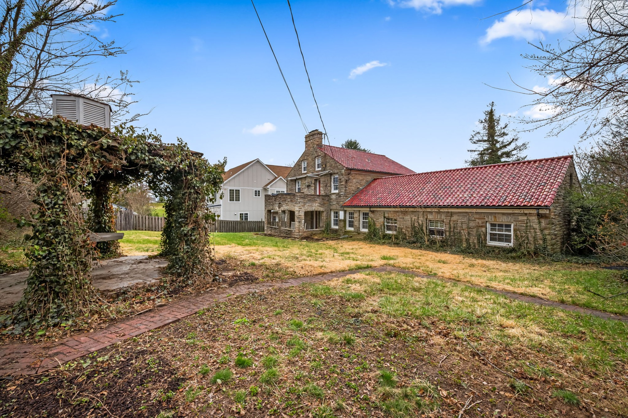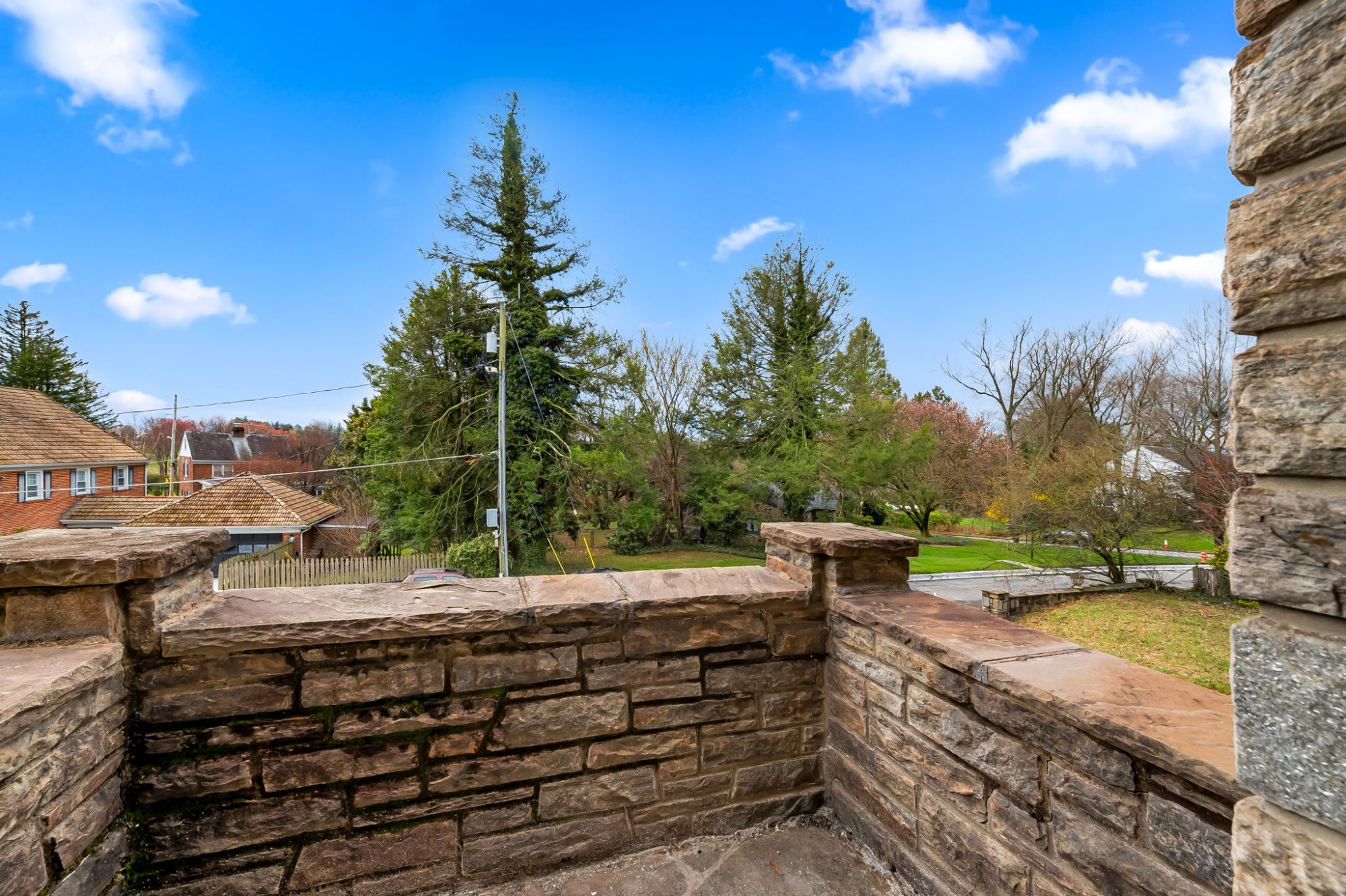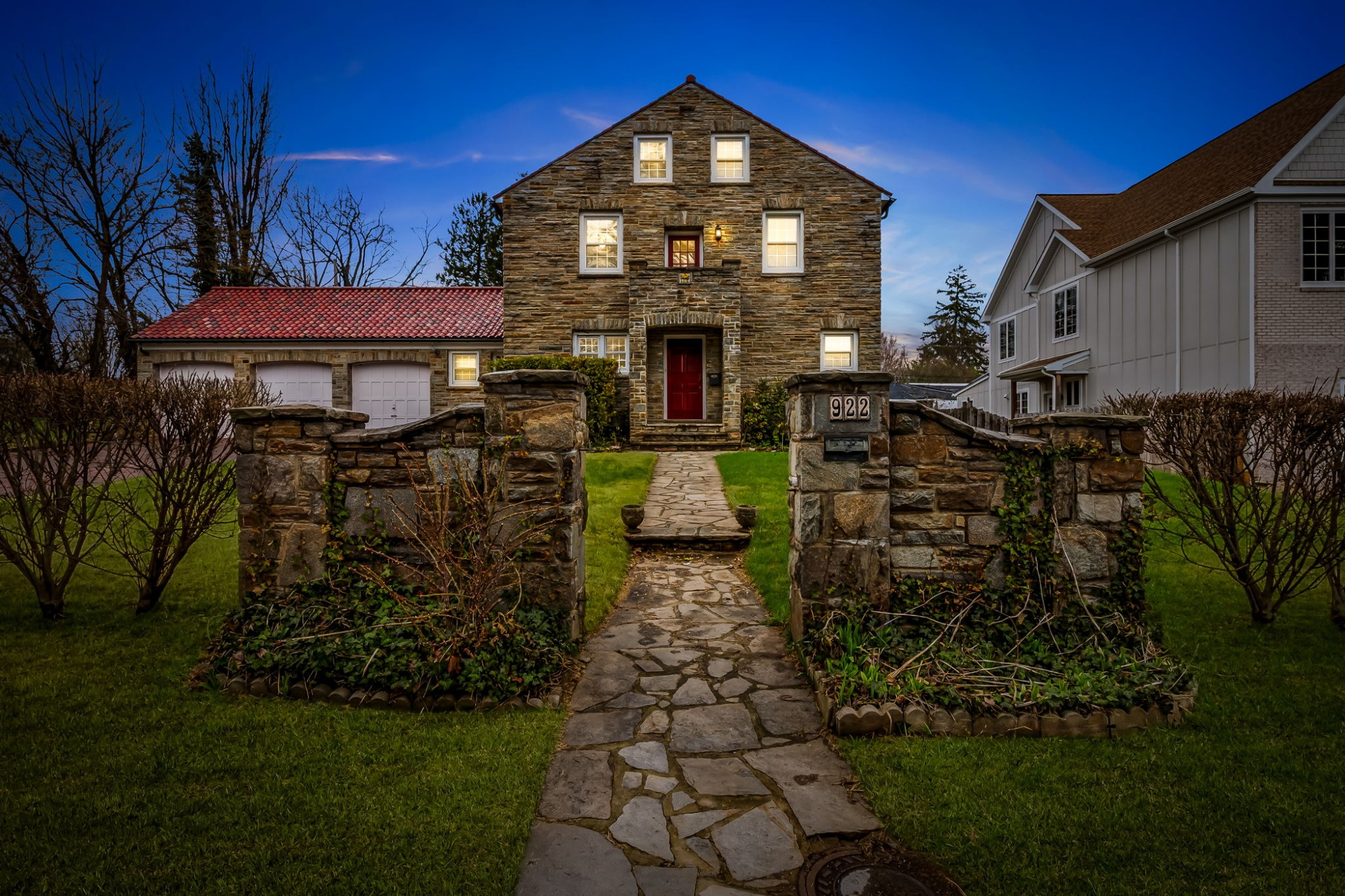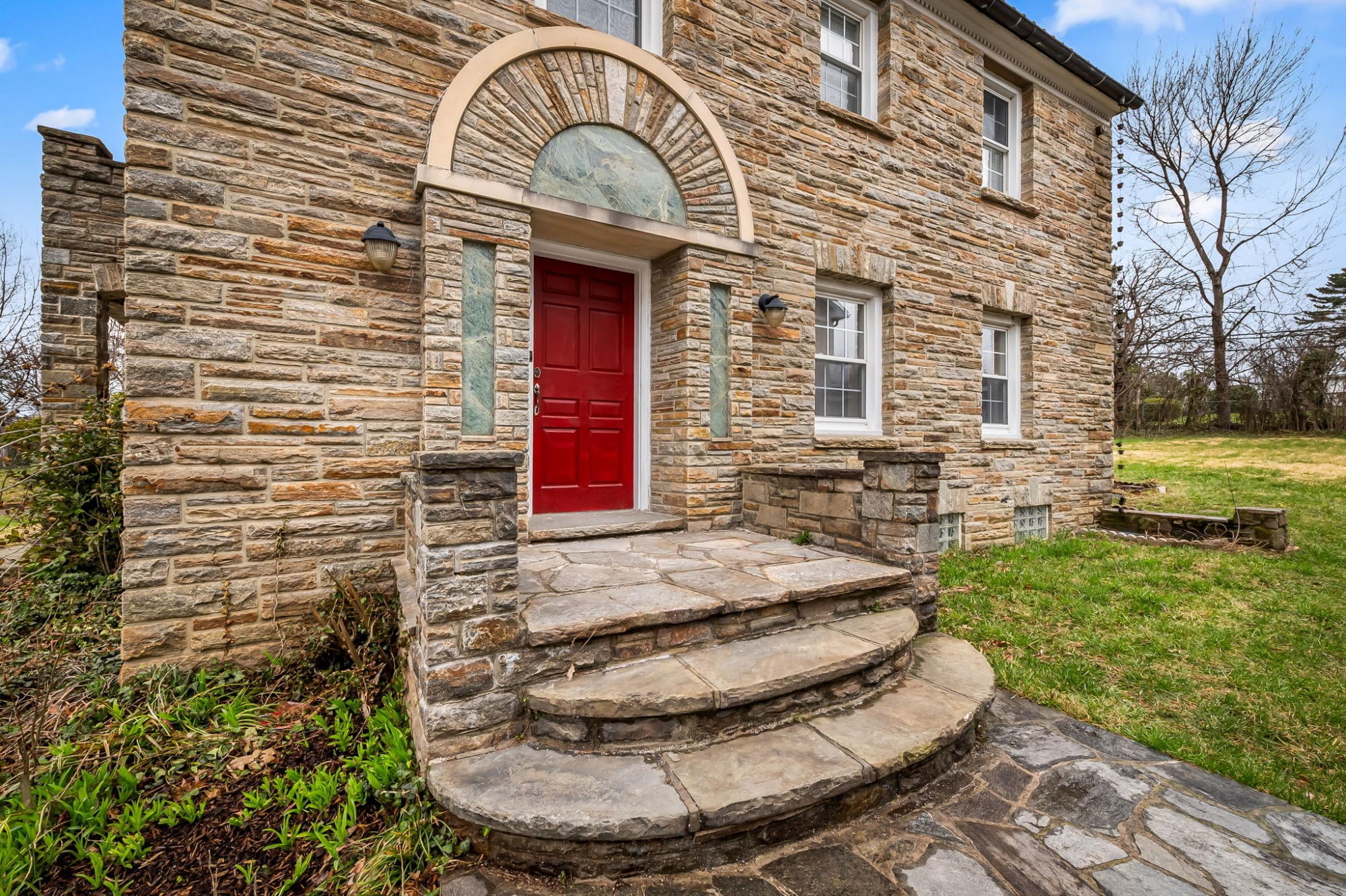 . The stone house is calling you home! It is the one you have admired for years. Constructed in 1941 of the finest of materials, 922 Fairway Drive in Towson's Knollwood (actually called Rodgers Forge Summit) neighborhood. The home feels like a castle, with high interior ceilings. mahogany doors, and solid construction. The parquet floor on the main level is mounted to a concrete subflooring, creating well-insulated spaces and keeping the house cool in the summer. There are surprises at every turn--the main floor family room could be the fourth bedroom, the lower level is finished with room for a pool table, and the living room and dining room are well-proportioned. Enter the covered back porch from the dining room or its rooftop deck from the Second bedroom. The primary bedroom features a walk-in closet and an original tiled bathroom with the cutest flamingoes and fish patterns. The other two bedrooms on this level are good sized, and the hall bath features the original seagull tile. Outside, find a gigantic yard complete with gazebo, patios, and more. The stone construction is original, and the house actually faced Stevenson Lane many years ago, so the back porch was originally on the side of the house. The tiled roof was replaced about 17 years ago and should last for close to 100 years. Expand the house into a portion of the three-car garage if you need extra room. Or finished the huge attic, which has four windows already in place.