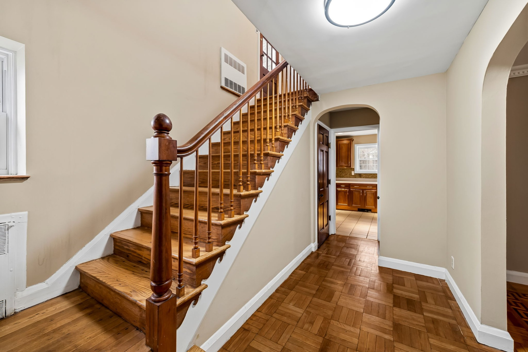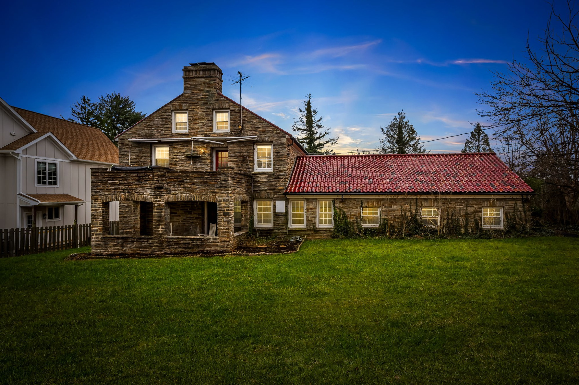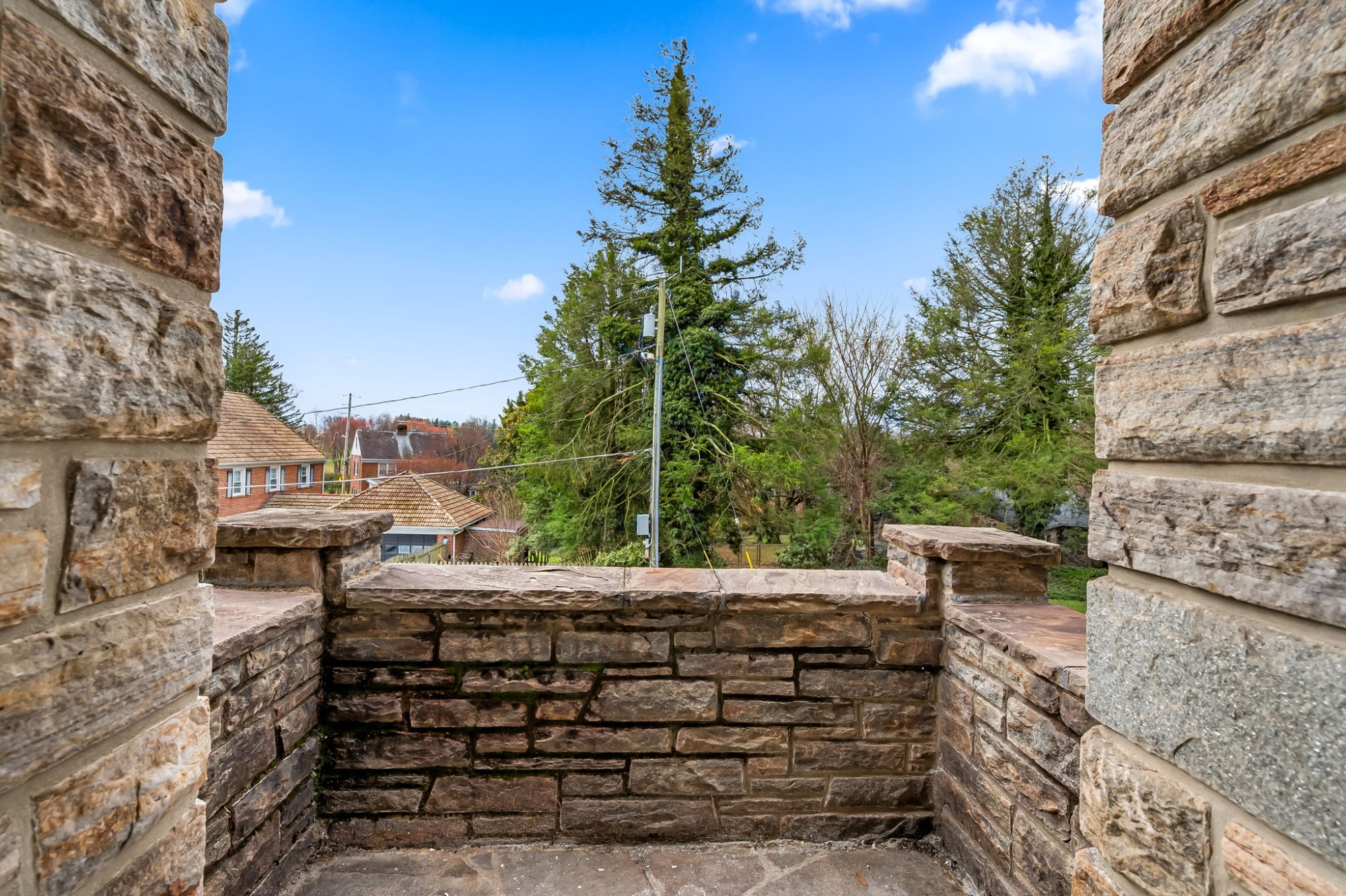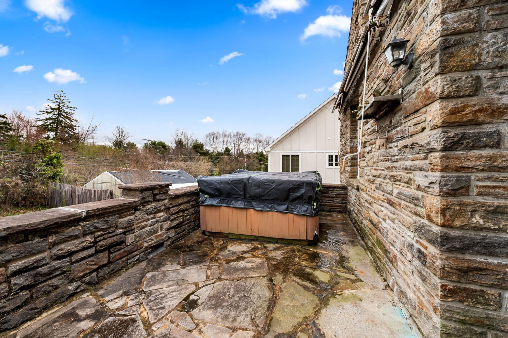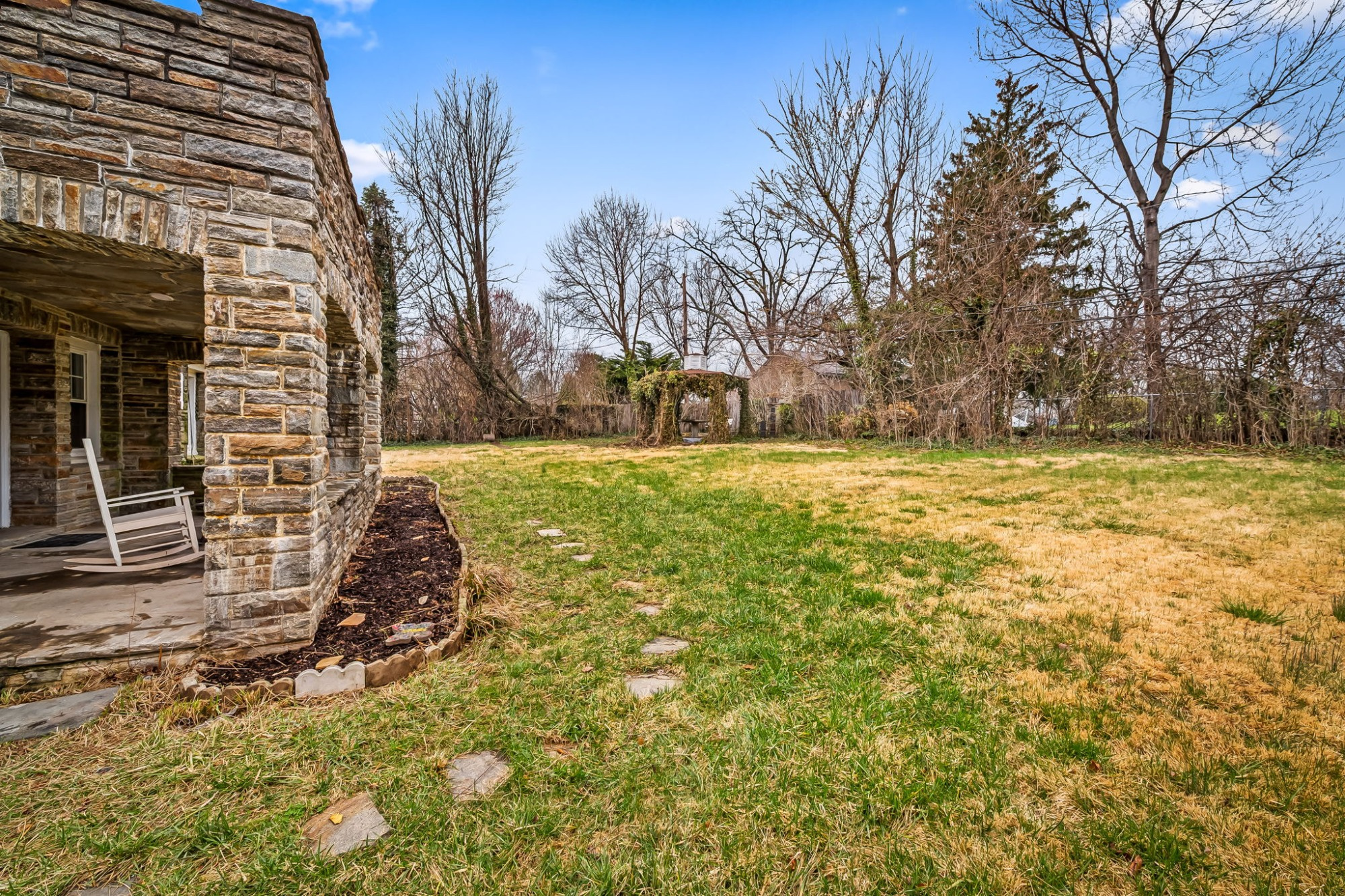. The stone house is calling you home! It is the one you have admired for years. Constructed in 1941 of the finest of materials, 922 Fairway Drive in Towson's Knollwood (actually called Rodgers Forge Summit) neighborhood. The home feels like a castle, with high interior ceilings. mahogany doors, and solid construction. The parquet floor on the main level is mounted to a concrete subflooring, creating well-insulated spaces and keeping the house cool in the summer. There are surprises at every turn--the main floor family room could be the fourth bedroom, the lower level is finished with room for a pool table, and the living room and dining room are well-proportioned. Enter the covered back porch from the dining room or its rooftop deck from the Second bedroom. The primary bedroom features a walk-in closet and an original tiled bathroom with the cutest flamingoes and fish patterns. The other two bedrooms on this level are good sized, and the hall bath features the original seagull tile. Outside, find a gigantic yard complete with gazebo, patios, and more. The stone construction is original, and the house actually faced Stevenson Lane many years ago, so the back porch was originally on the side of the house. The tiled roof was replaced about 17 years ago and should last for close to 100 years. Expand the house into a portion of the three-car garage if you need extra room. Or finished the huge attic, which has four windows already in place.