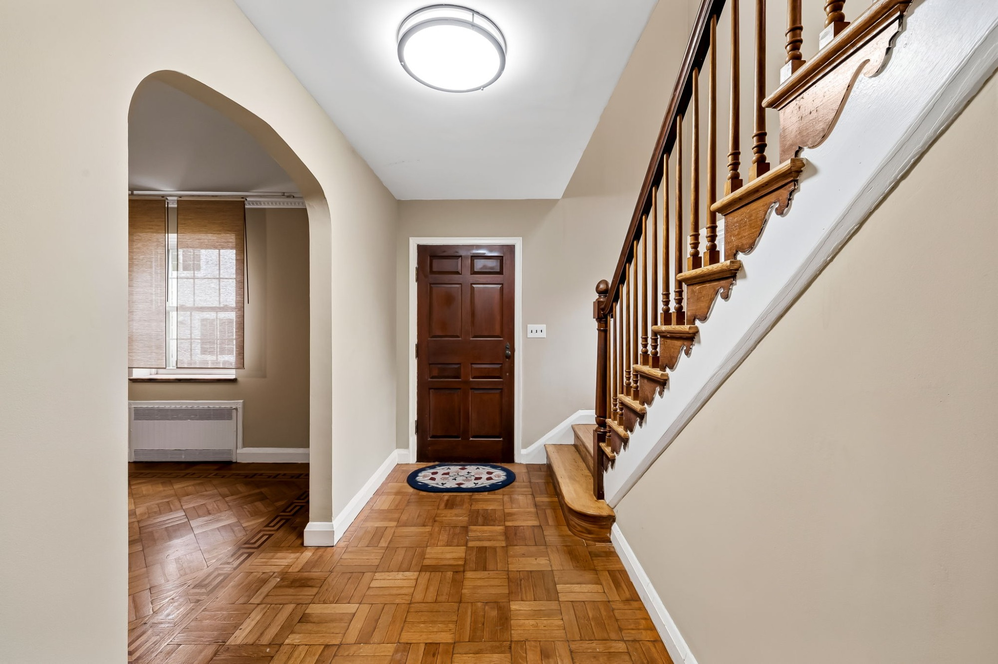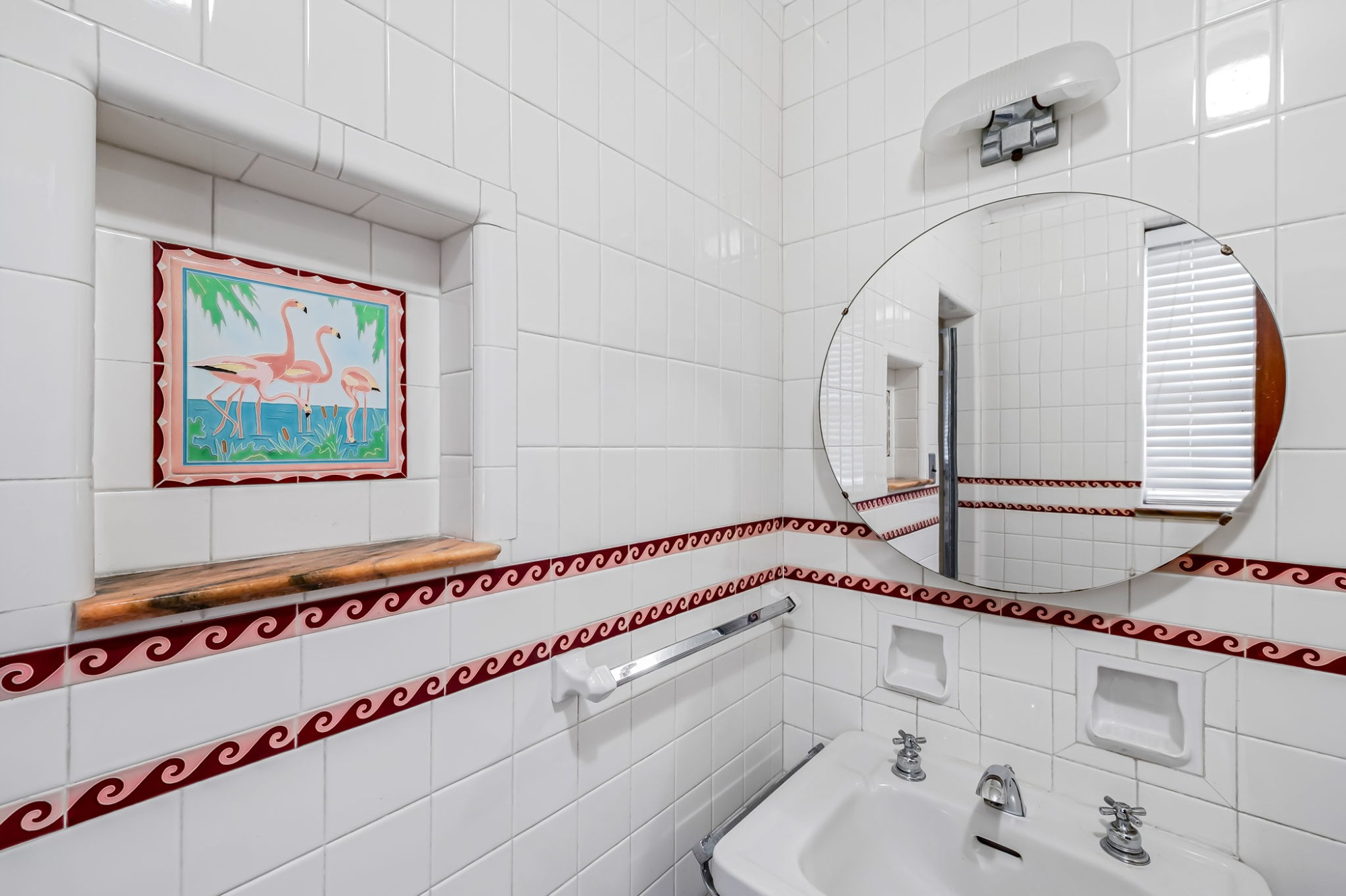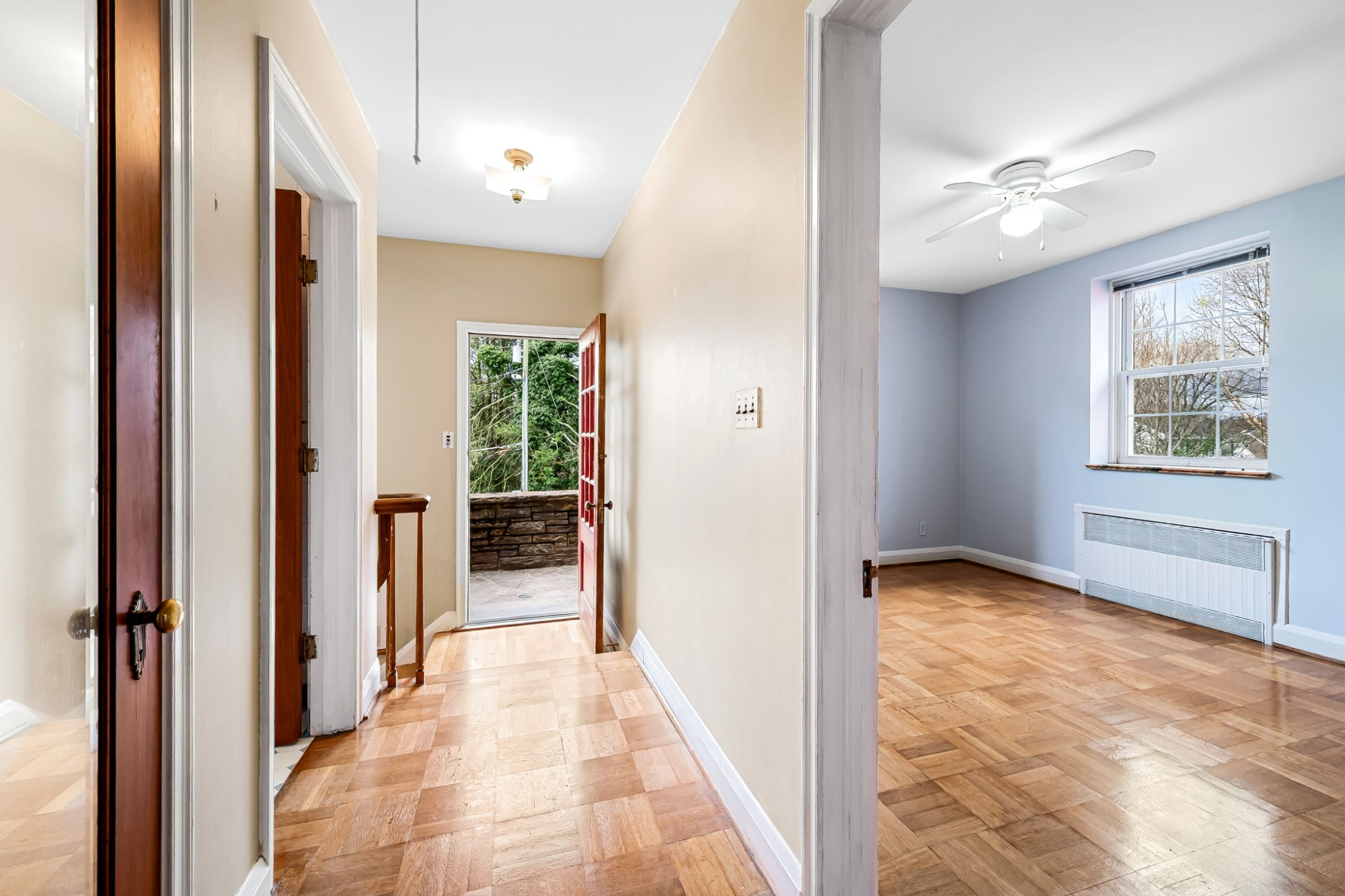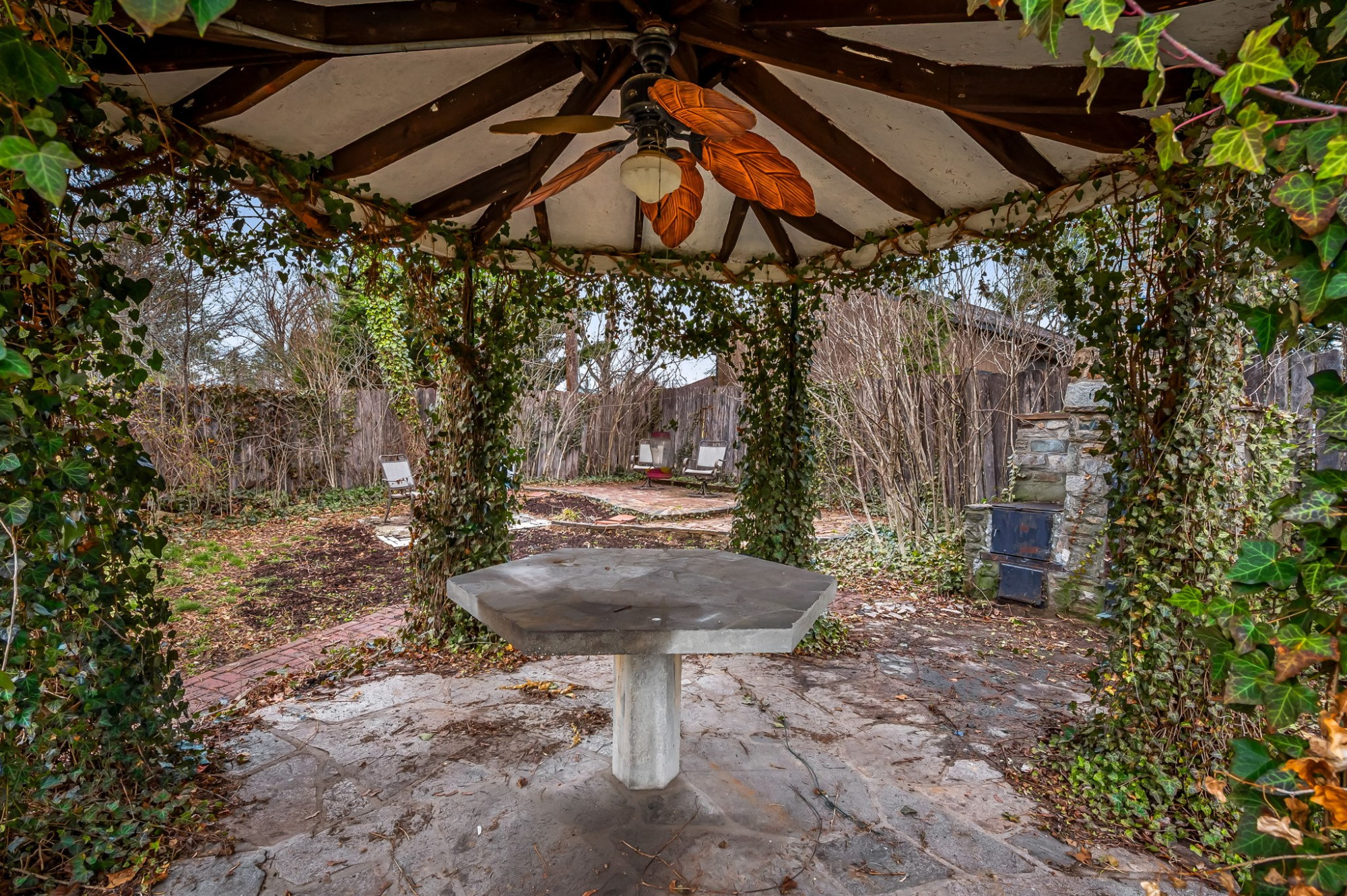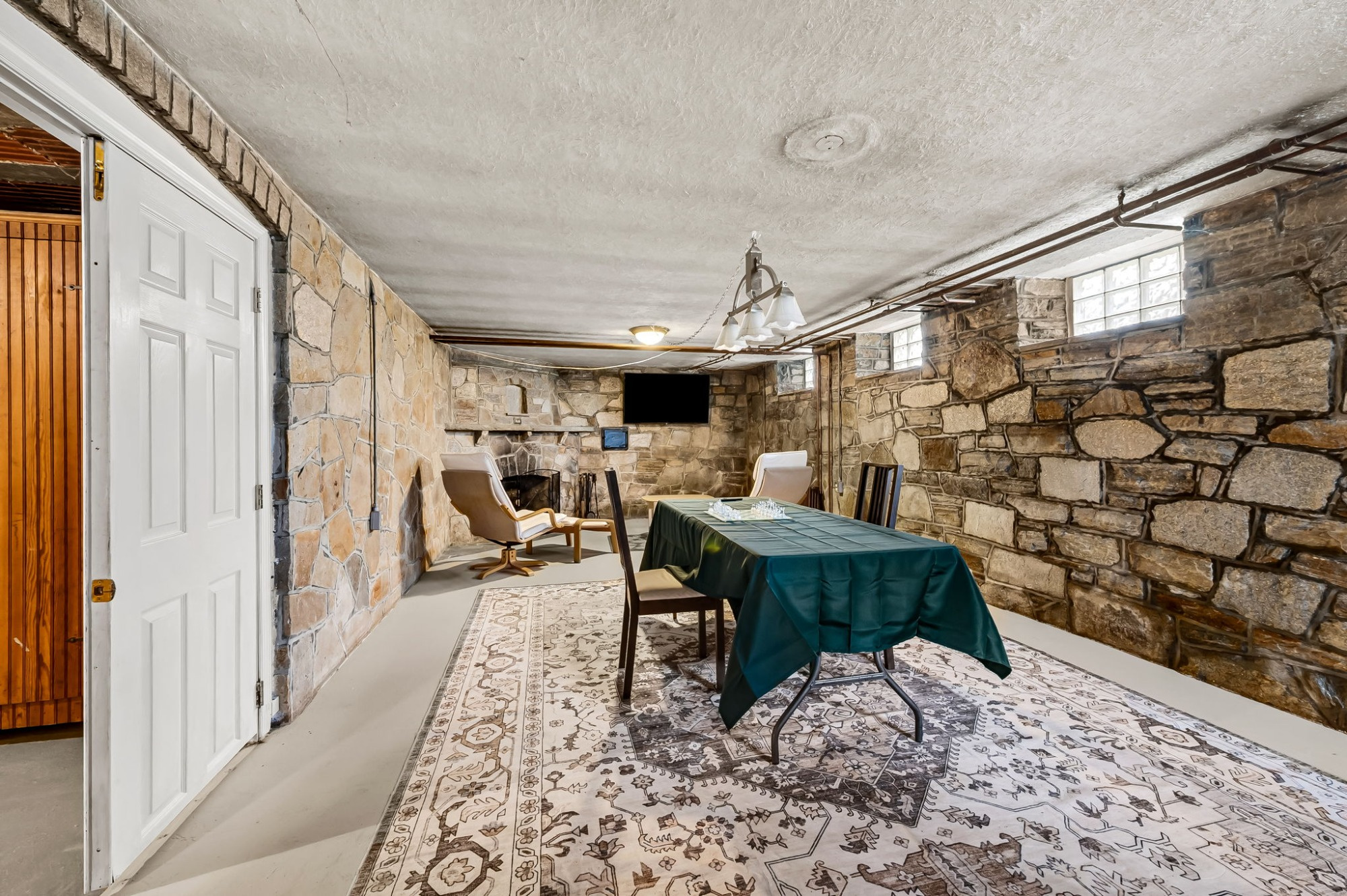 . The stone house is calling you home! It is the one you have admired for years. Constructed in 1941 of the finest of materials, 922 Fairway Drive in Towson's Knollwood (actually called Rodgers Forge Summit) neighborhood. The home feels like a castle, with high interior ceilings. mahogany doors, and solid construction. The parquet floor on the main level is mounted to a concrete subflooring, creating well-insulated spaces and keeping the house cool in the summer. There are surprises at every turn--the main floor family room could be the fourth bedroom, the lower level is finished with room for a pool table, and the living room and dining room are well-proportioned. Enter the covered back porch from the dining room or its rooftop deck from the Second bedroom. The primary bedroom features a walk-in closet and an original tiled bathroom with the cutest flamingoes and fish patterns. The other two bedrooms on this level are good sized, and the hall bath features the original seagull tile. Outside, find a gigantic yard complete with gazebo, patios, and more. The stone construction is original, and the house actually faced Stevenson Lane many years ago, so the back porch was originally on the side of the house. The tiled roof was replaced about 17 years ago and should last for close to 100 years. Expand the house into a portion of the three-car garage if you need extra room. Or finished the huge attic, which has four windows already in place.