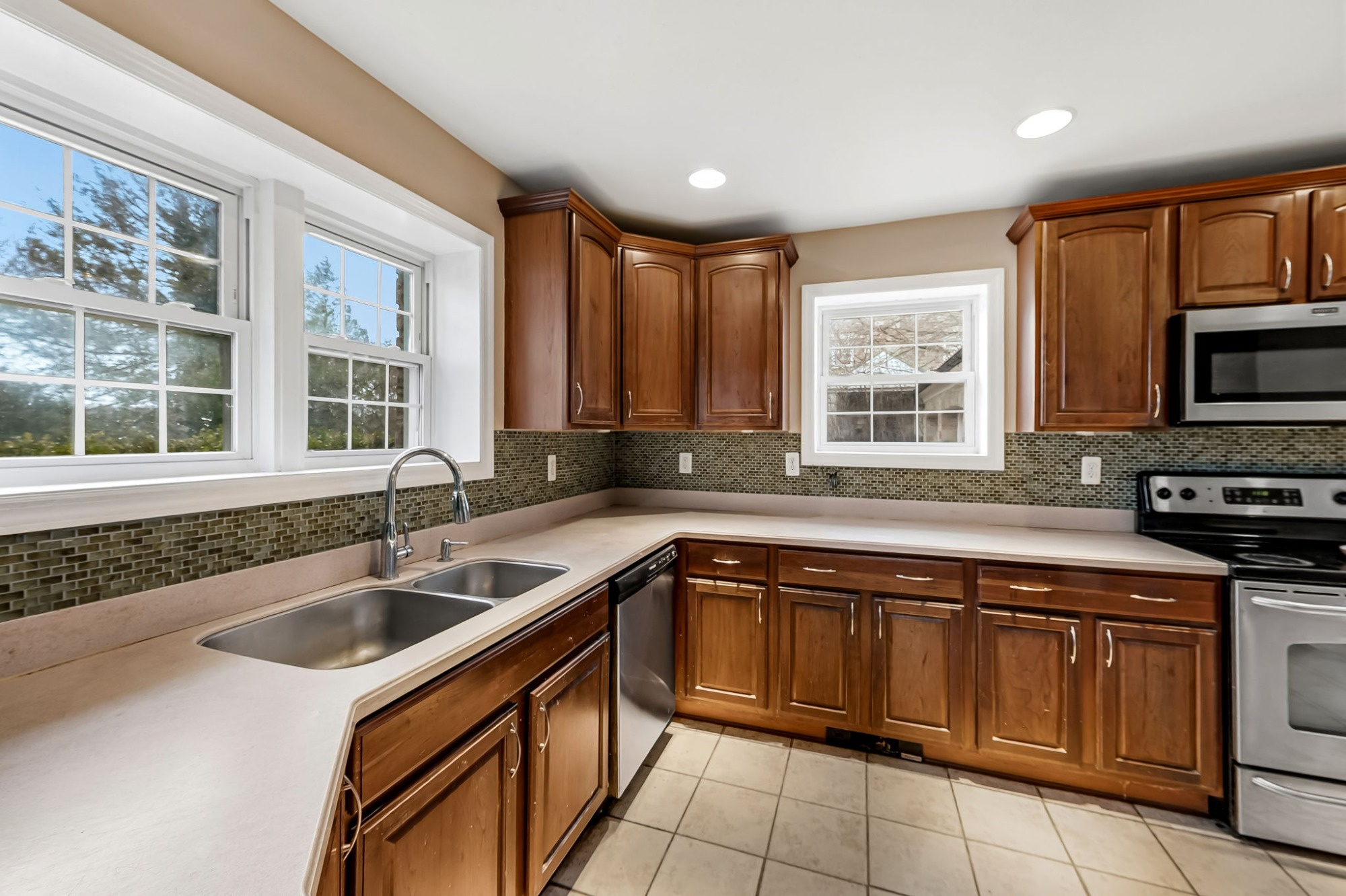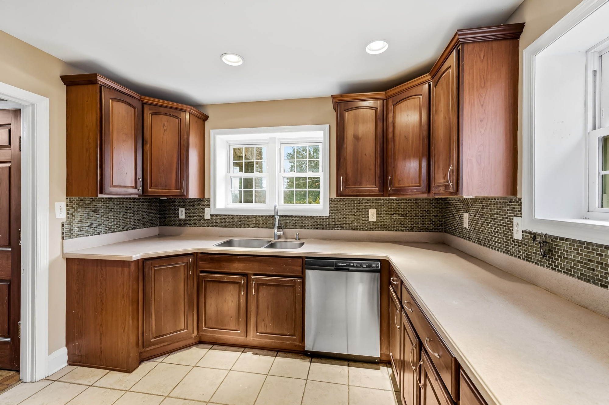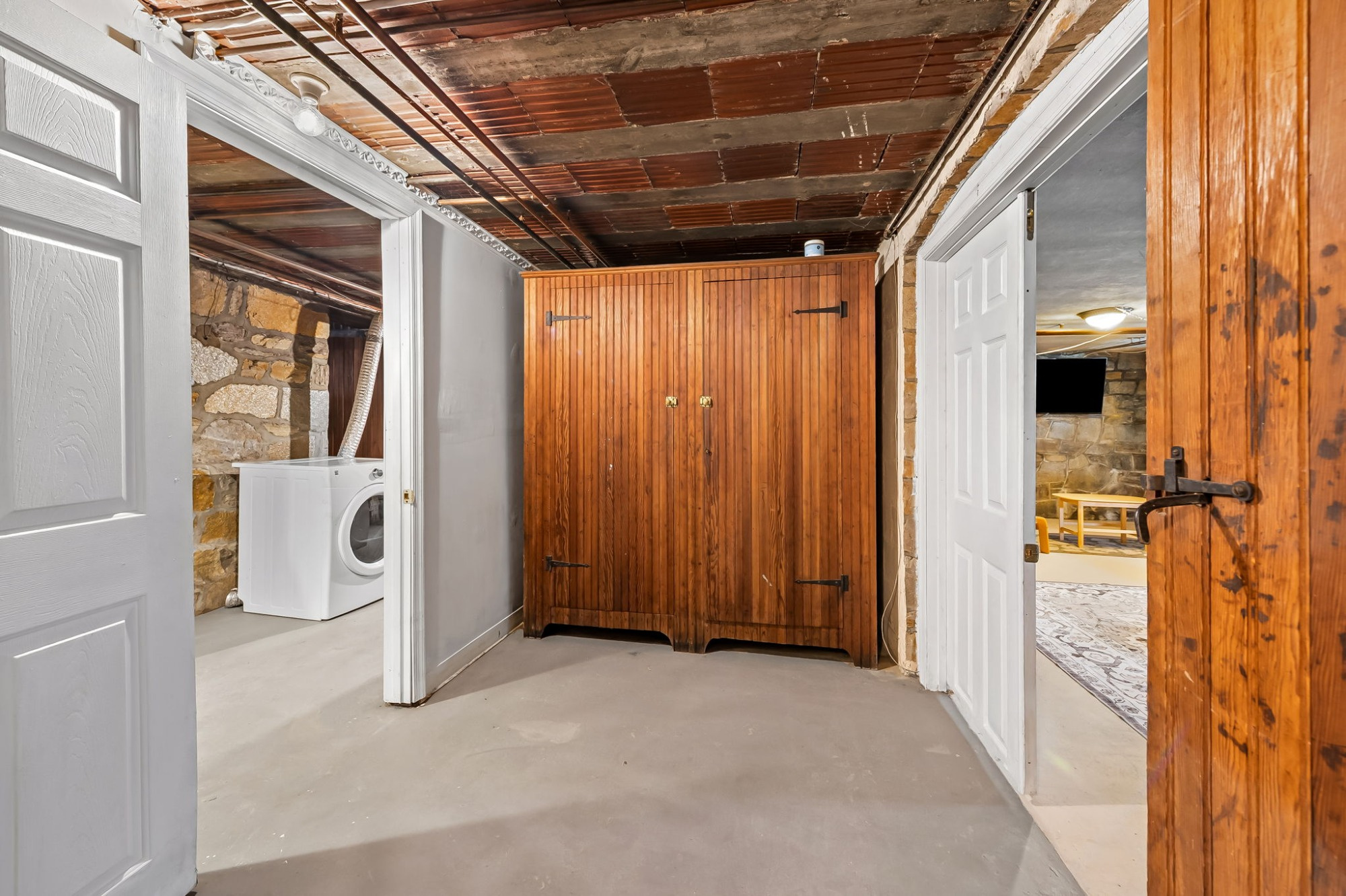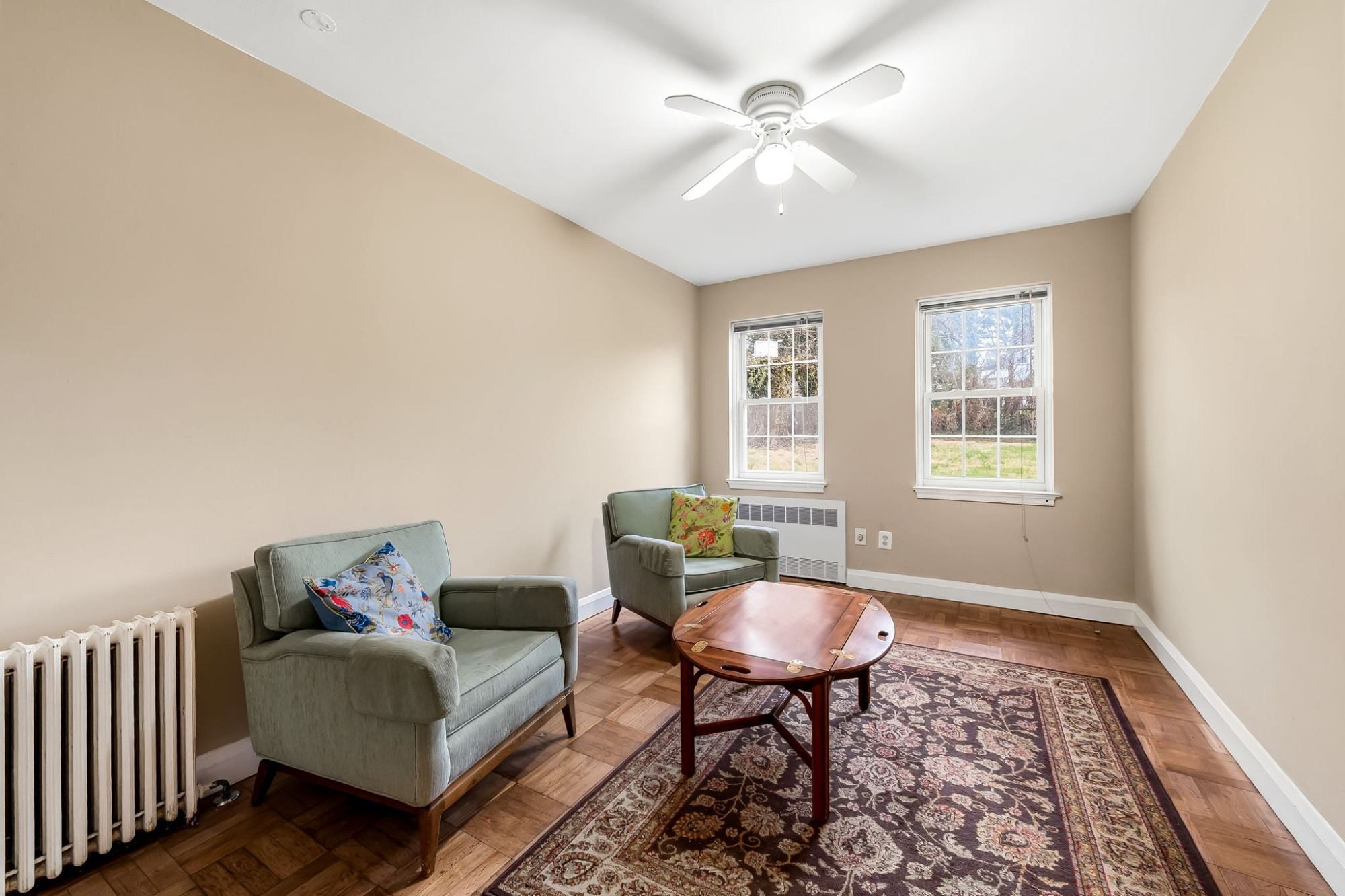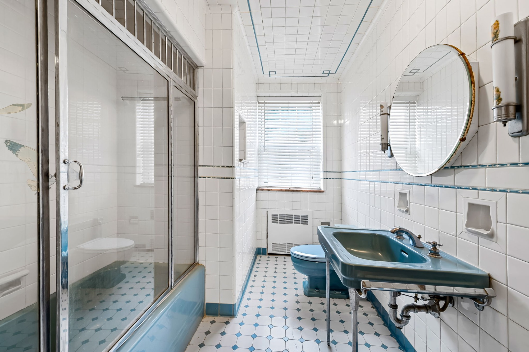 . The stone house is calling you home! It is the one you have admired for years. Constructed in 1941 of the finest of materials, 922 Fairway Drive in Towson's Knollwood (actually called Rodgers Forge Summit) neighborhood. The home feels like a castle, with high interior ceilings. mahogany doors, and solid construction. The parquet floor on the main level is mounted to a concrete subflooring, creating well-insulated spaces and keeping the house cool in the summer. There are surprises at every turn--the main floor family room could be the fourth bedroom, the lower level is finished with room for a pool table, and the living room and dining room are well-proportioned. Enter the covered back porch from the dining room or its rooftop deck from the Second bedroom. The primary bedroom features a walk-in closet and an original tiled bathroom with the cutest flamingoes and fish patterns. The other two bedrooms on this level are good sized, and the hall bath features the original seagull tile. Outside, find a gigantic yard complete with gazebo, patios, and more. The stone construction is original, and the house actually faced Stevenson Lane many years ago, so the back porch was originally on the side of the house. The tiled roof was replaced about 17 years ago and should last for close to 100 years. Expand the house into a portion of the three-car garage if you need extra room. Or finished the huge attic, which has four windows already in place.